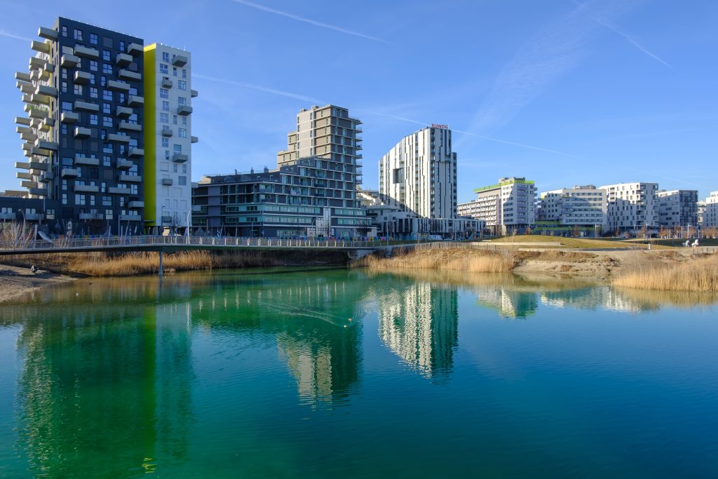 Езерния град Aspern се намира в североизточната част на Виена в момента е най-големият проект за жилищно строителство и градско развитие в Европа и се очаква да осигури пространство за повече от 25 000 души за живеене до 2030 г.