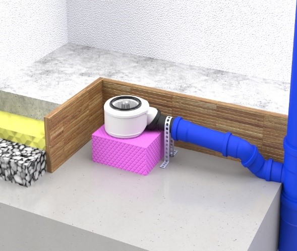 Първото предизвикателство възниква при полагането на алтернативната хидроизолация. Ако се използва конвенционален сифон с кофраж, сифонът трябва да бъде отстранен и запазеното място да бъде хидроизолирано. За целта се нанася свързващата хидроизолация и допълнително по ъглите на вдлъбнатината се подсилва с премостваща лента. Това не само струва много време, но е и изключително податливо на грешки.