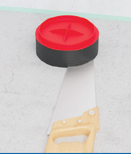 Formwork is also not required when installing installation boxes. The screed can be laid continuously up to the Flexbox drain body. The body is then cut flush with the screed and thus subsequently adjusted to the screed height (see Figure 4). This saves time and money during installation. In addition, a continuous screed without interruptions is ensured.