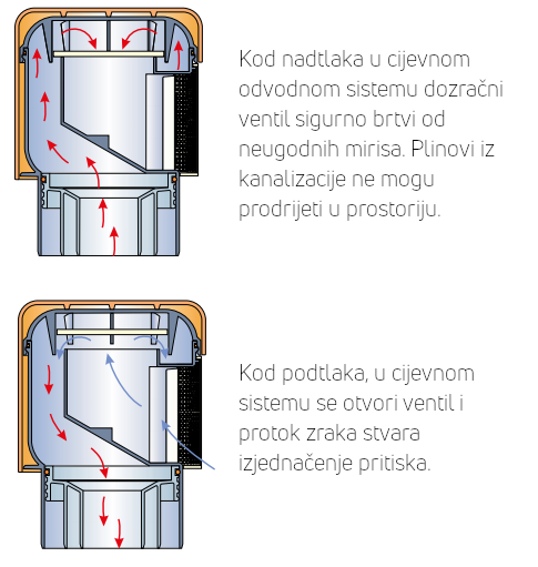 - Ventili za dovod zraka izravno na horizontalnim spojnim cijevima trebaju spriječiti isisavanje vode iz sifona i na taj način spriječiti loš miris
