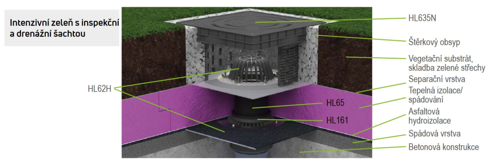 Dôkladné plánovanie je bezpodmienečne nutné, aby sa zabezpečilo, že v prvom rade nedôjde k poškodeniu strechy alebo budovy. Pri realizácii zelených striech zohráva dôležitú úlohu aj použitie správnych produktov pre príslušnú aplikáciu. Odvodnenie je nevyhnutné. Pri plánovaní odvodnenia strechy treba počítať s následnou údržbou zelenej strechy. Pre zelené strechy by sa preto mala počítať s revíznou šachtou pre strešné vpusty. To značne uľahčuje neskoršiu údržbu. Z tohto dôvodu spoločnosť HL vyvinula revíznu a drenážnu šachtu HL635N, ktorá je ideálna pre zelené, štrkové a terasové strechy.