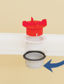Son adım, duş teknesini sifona sıkı bir şekilde bağlamaktır. İşte burada üçüncü zorluk ortaya çıkar, çünkü geleneksel sifon kullanıldığında, tekne artık “kör” olarak sifona vidalanmak zorundadır (bkz. Şekil 10).